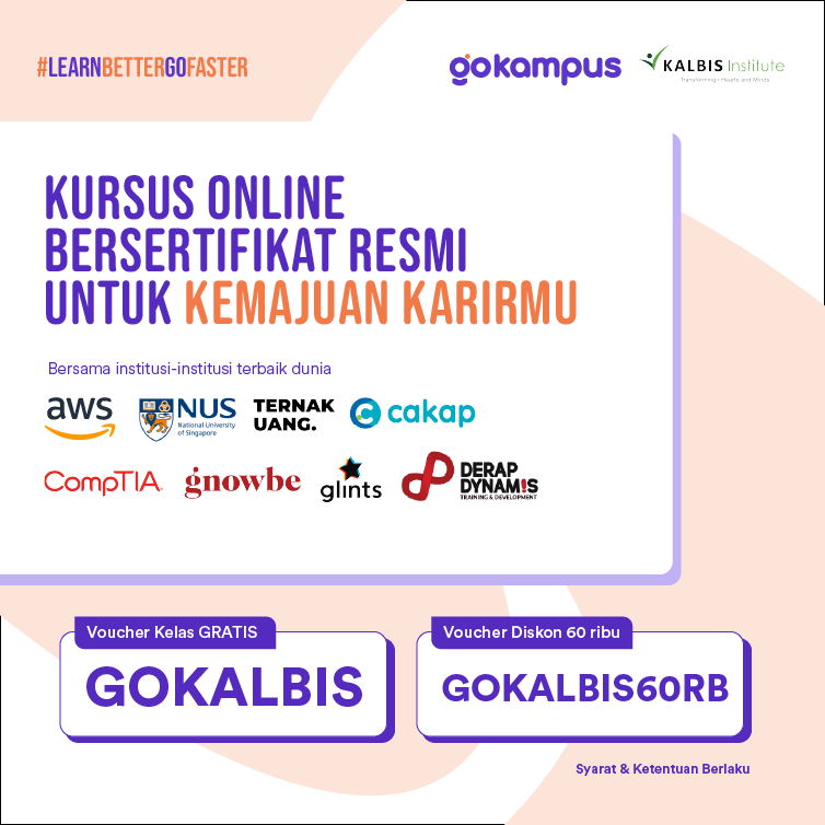 Ayo belajar tanpa batas di kursus-kursus online bersertifikat resmi dari institusi terbaik dunia seperti AWS, NUS, TernakUang, Cakap, Glint....
