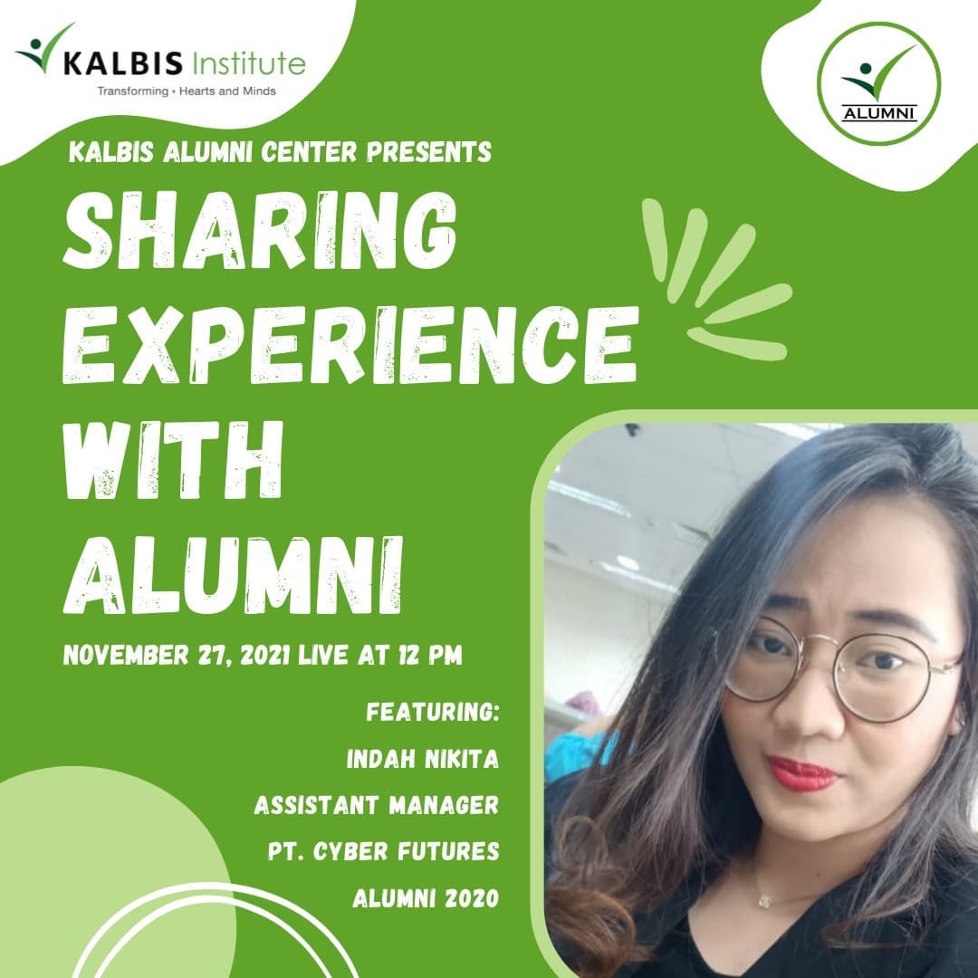 Yuk join dalam Instagram Live "Sharing Experience With Alumni" dengan alumni keren Indah Nikita (Assistant Manager PT. Cyber Futures - Alumni 2020) yang tentunya punya cerita menarik dan inspiratif untuk teman-teman ๐