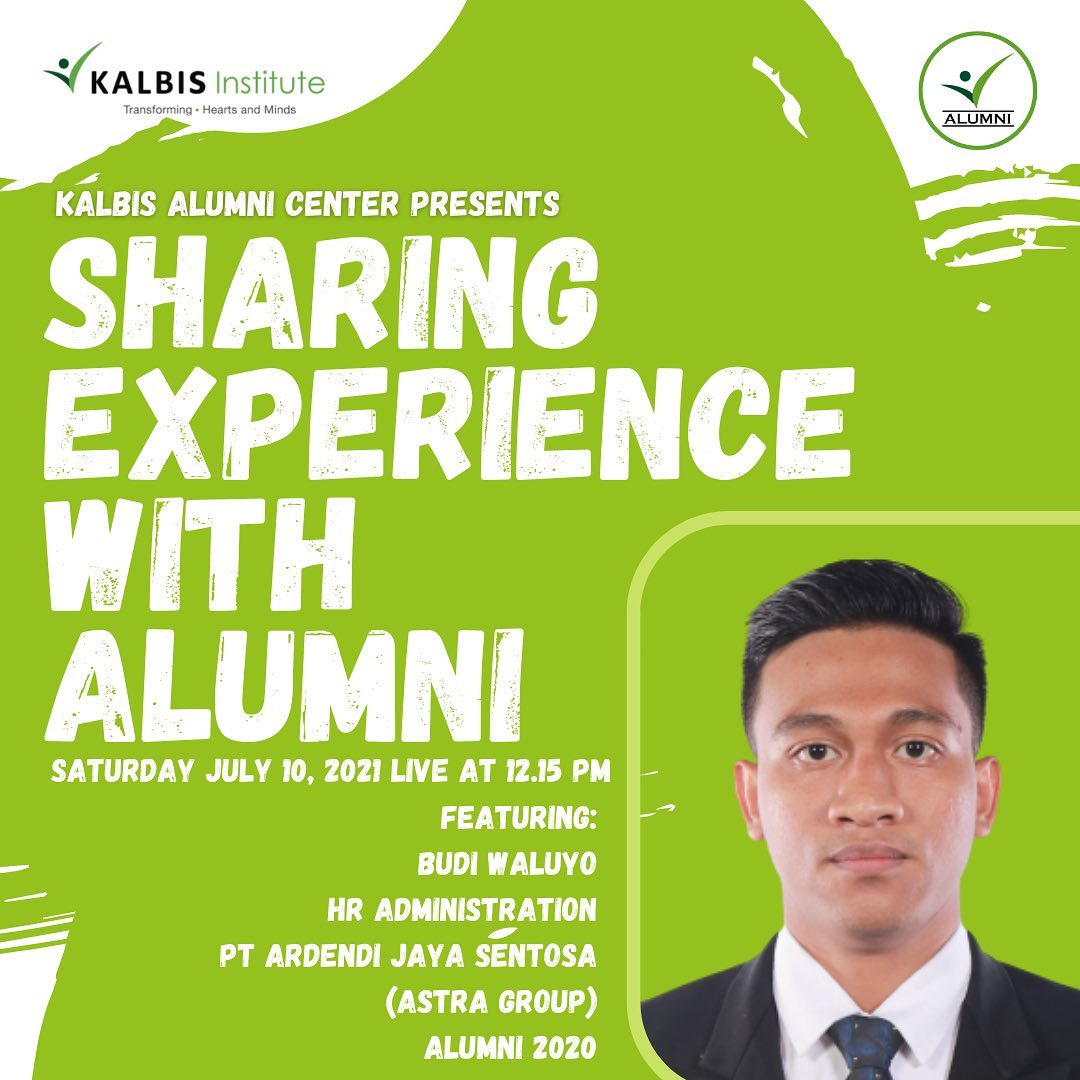 Yuk join dalam Instagram Live "Sharing Experience With Alumni" dengan alumni keren Budi Waluyo (HR Administration PT. Ardendi Jaya Sentosa (Astra Group) - Alumni 2020) yang tentunya punya cerita menarik dan inspiratif untuk teman-teman π