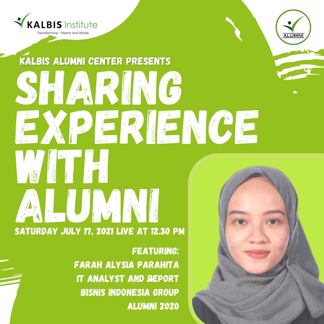 Yuk join dalam Instagram Live "Sharing Experience With Alumni" dengan alumni keren Farah Alysia Parahita (IT Analyst and Report Bisnis Indonesia Group - Alumni 2020) yang tentunya punya cerita menarik dan inspiratif untuk teman-teman π