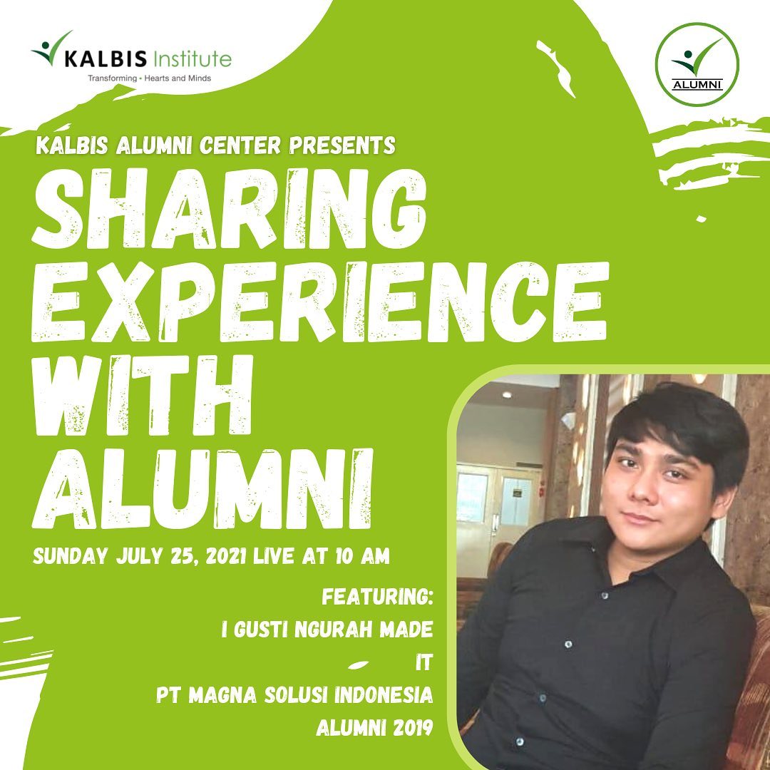 Yuk join dalam Instagram Live "Sharing Experience With Alumni" dengan alumni keren I Gusti Ngurah Made (IT PT. Magna Solusi Indonesia - Alumni 2019) yang tentunya punya cerita menarik dan inspiratif untuk teman-teman π