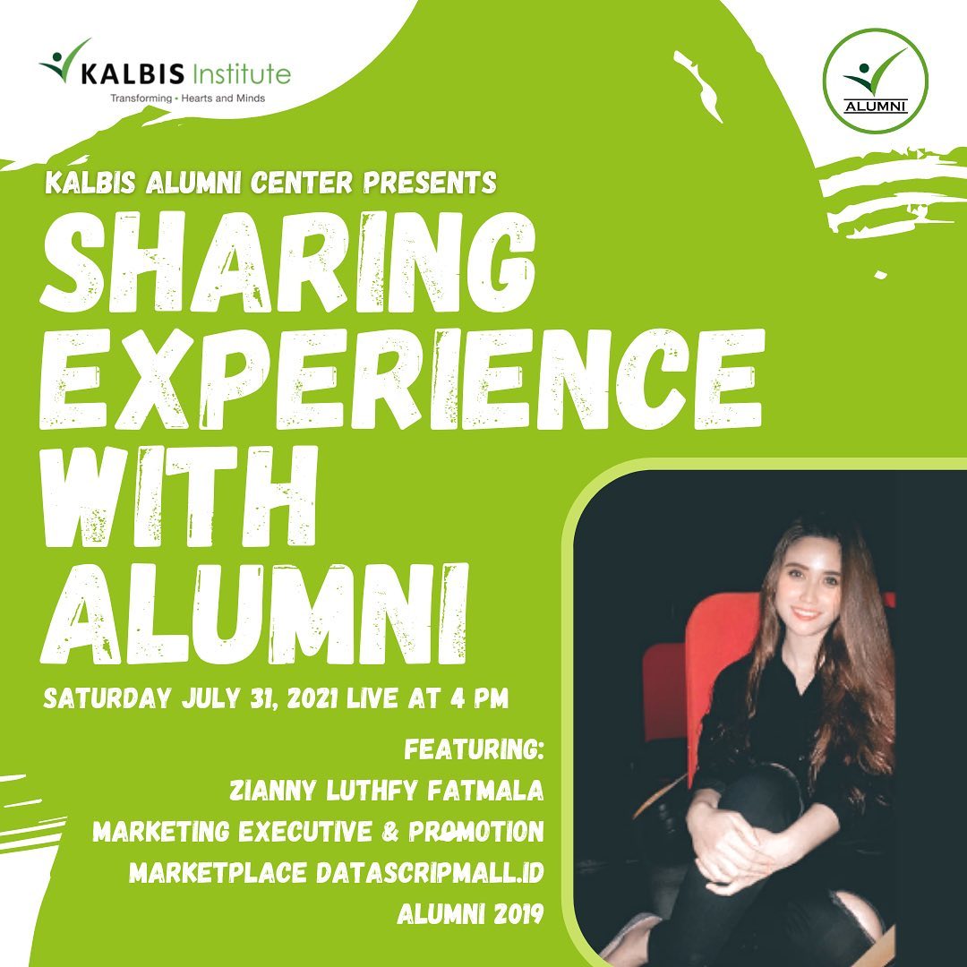 Yuk join dalam Instagram Live "Sharing Experience With Alumni" dengan alumni keren Zianny Luthfy Fatmala (Marketing Executive & Promotion Marketplace Datascripmall.id - Alumni 2019) yang tentunya punya cerita menarik dan inspiratif untuk teman-teman π