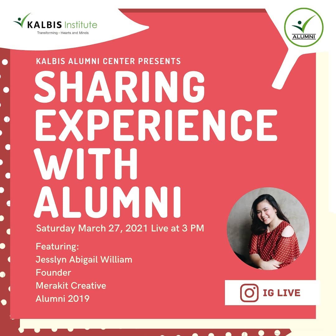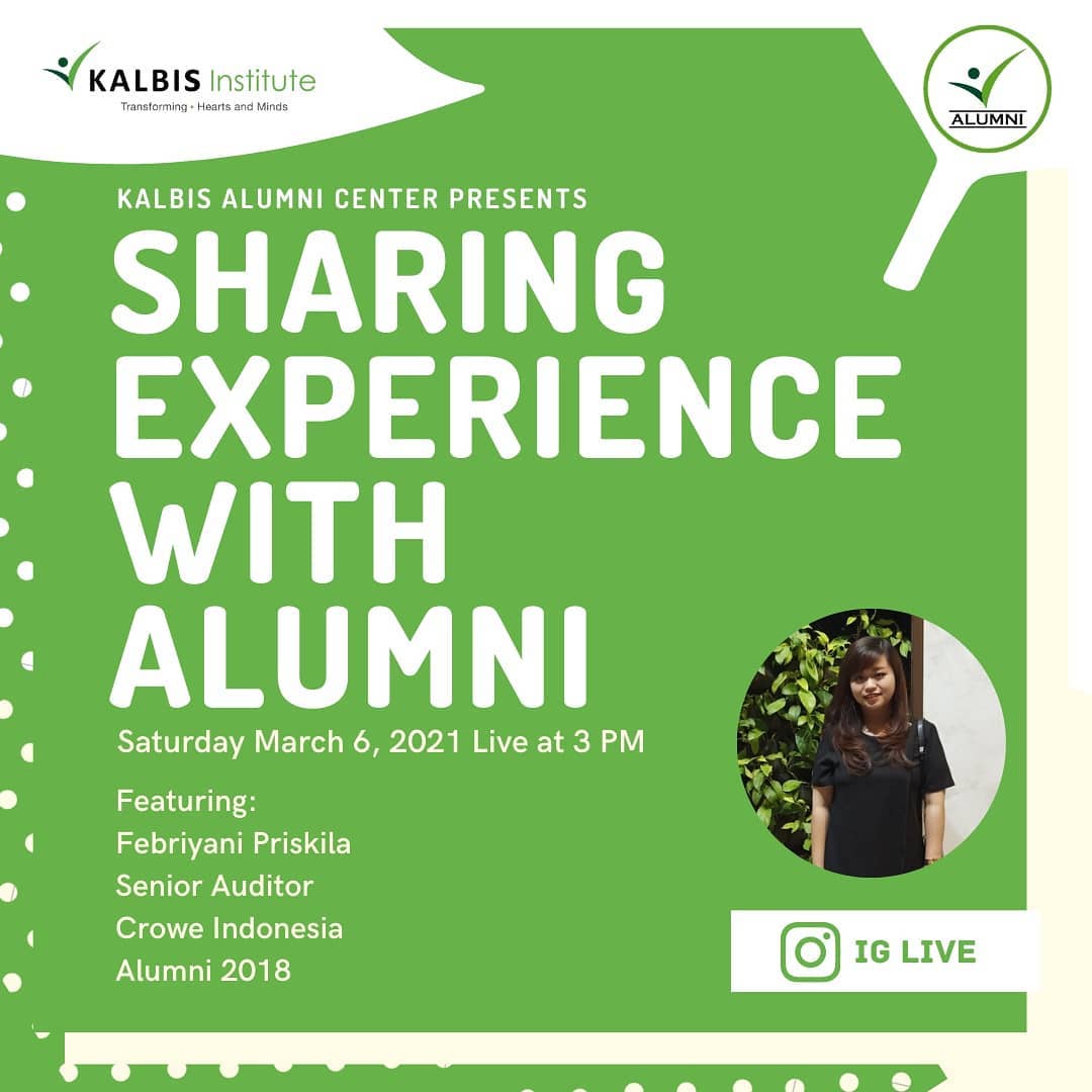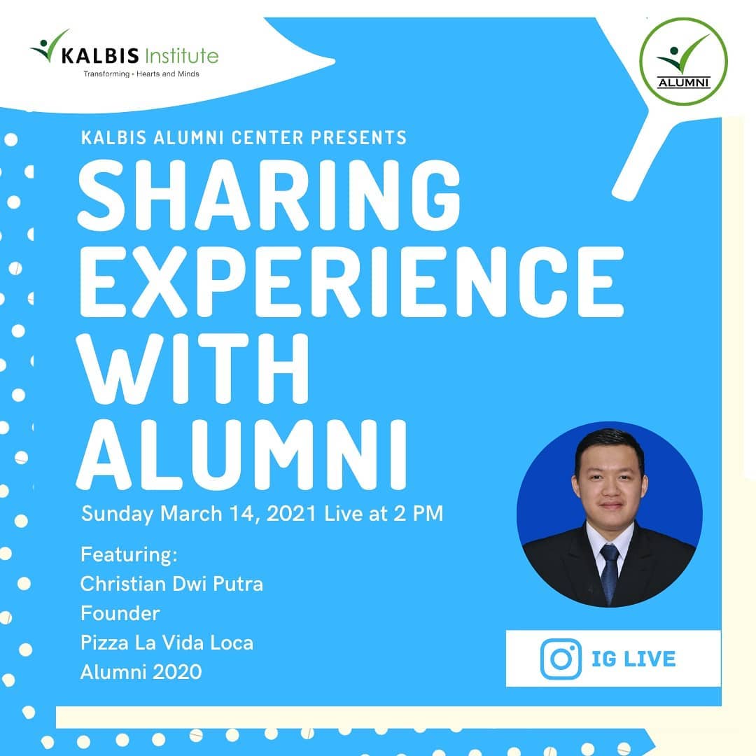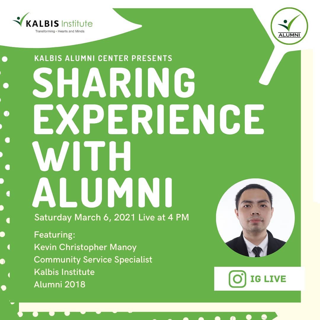 Yuk join dalam Instagram Live "Sharing Experience With Alumni" dengan alumni keren Kevin Christopher Manoy (Community Service Specialist kalbis Institute - Alumni 2018) yang tentunya punya cerita menarik dan inspiratif untuk teman-teman π