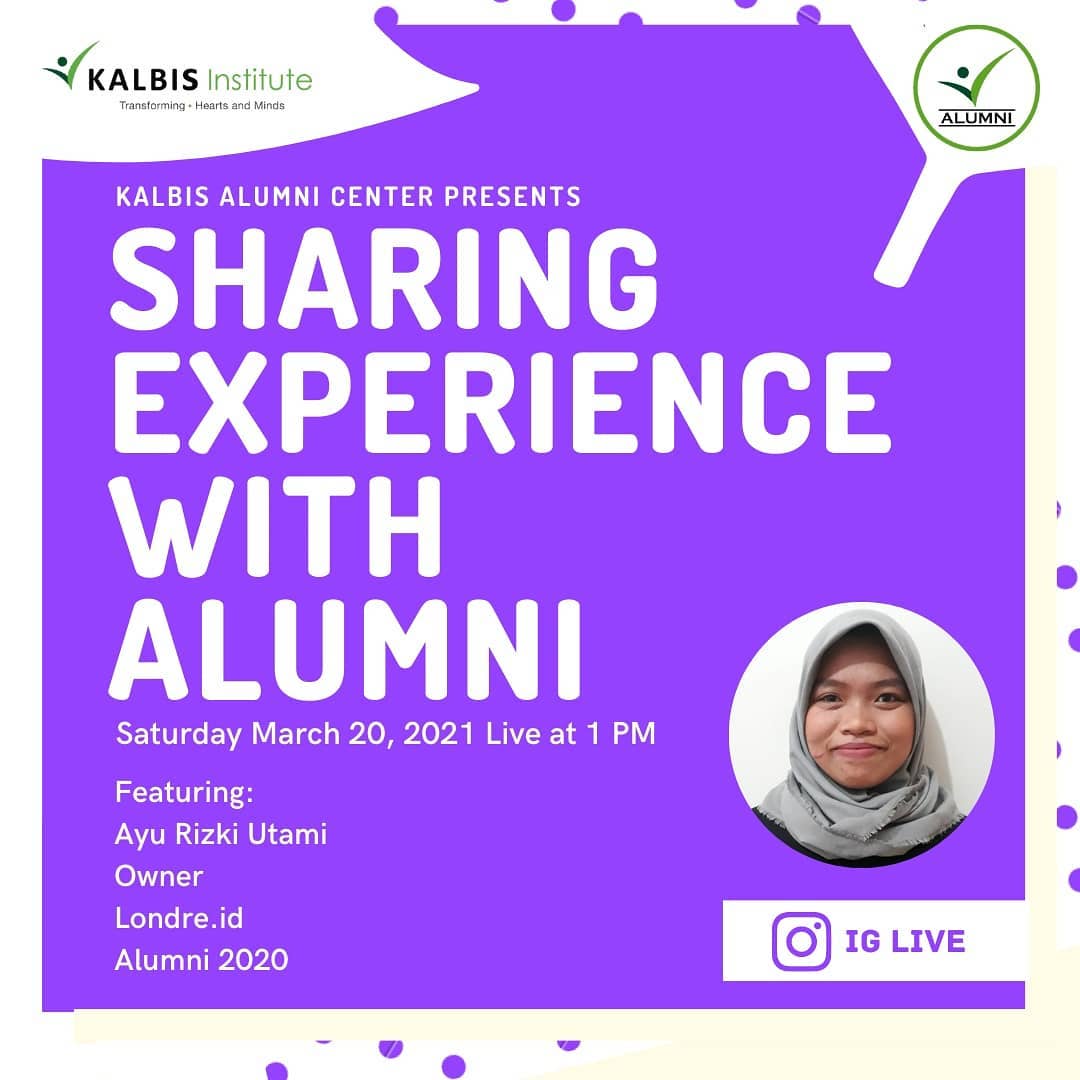 Yuk join dalam Instagram Live "Sharing Experience With Alumni" dengan alumni keren Ayu Rizki Utami (Owner Londre.id - Alumni 2020) yang tentunya punya cerita menarik dan inspiratif untuk teman-teman π