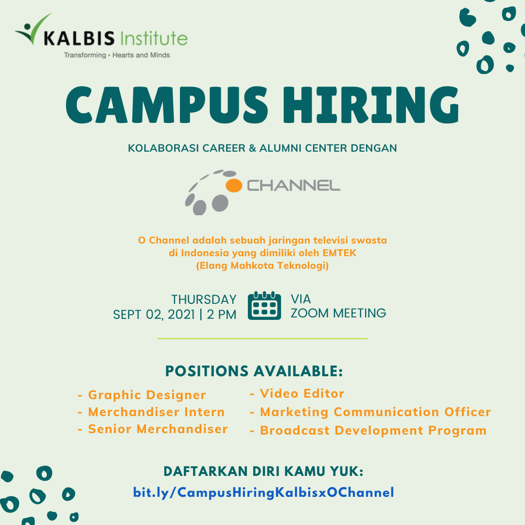 Yuk ikuti acara CAMPUS HIRING kolaborasi antara Career & Alumni Center dengan O Channel!
