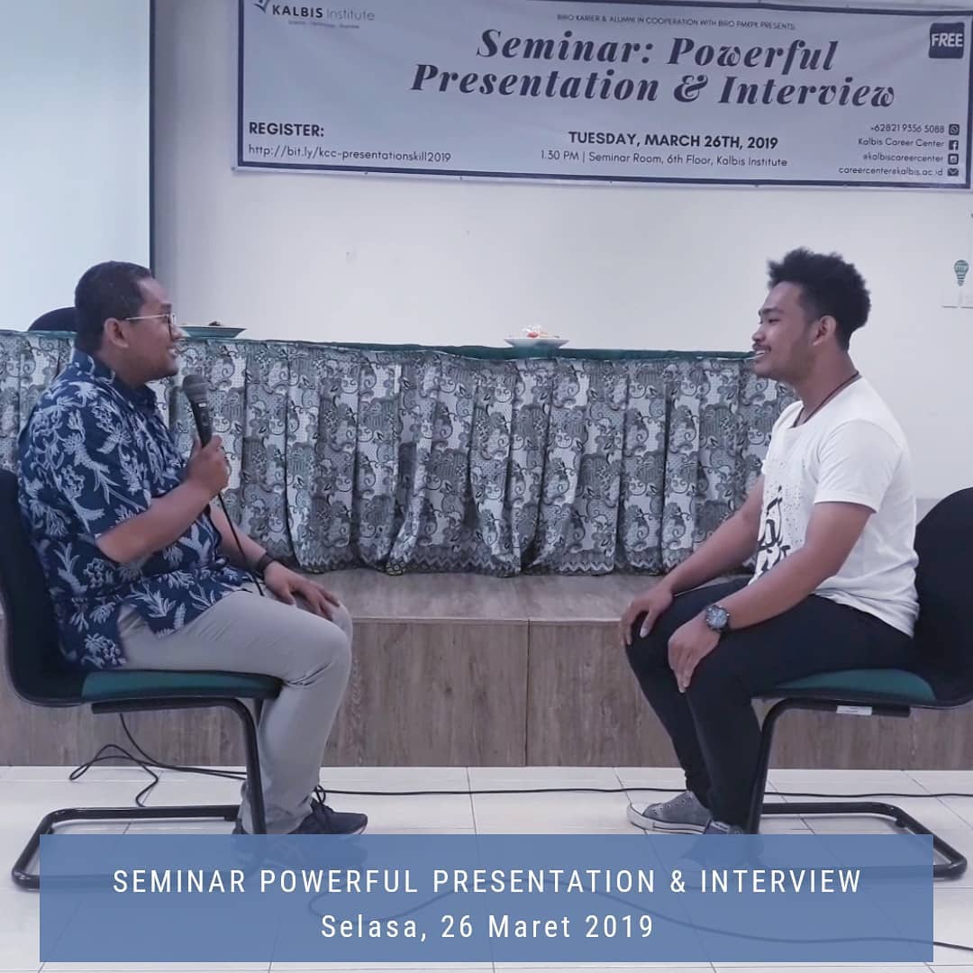 Seminar ini diselenggarakan oleh kalbis career center yang bekerja sama dengan pmkpkkalbis. Seminar ini berlangsung pada hari Selasa, 26 Maret 2019 pada pukul 14.00 WIB sampai dengan pukul 16.00 WIB di Ruang Seminar Lantai 6, Kalbis Institute