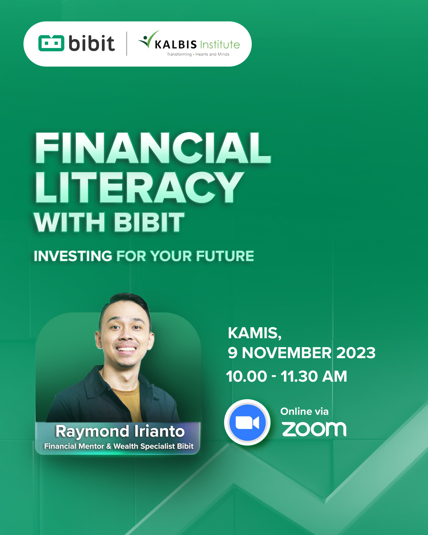 Kalbis Institute bekerja sama dengan Bibit akan menyelenggarakan webinar “Financial Literacy with Bibit: Investing for Your Future” yang berlangsung pada: