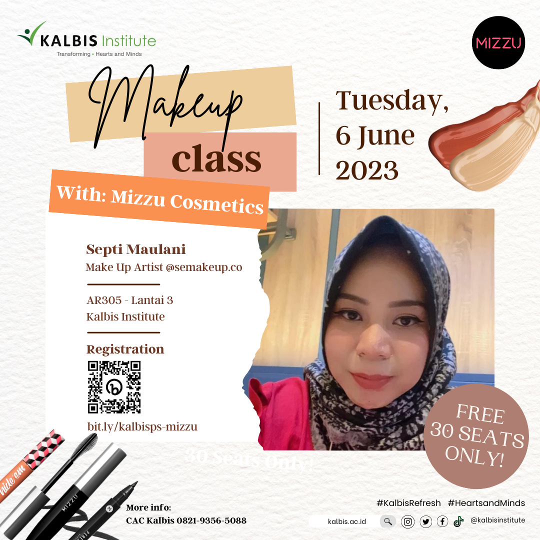 Siapa yang mau belajar make up langsung dari MUA nih? Kali ini Career & Alumni Center bekerja sama dengan Mizzu Cosmetics akan mengadakan Make Up Class bersama MUA Septi Maulani @semakeup.co yang akan diselenggarakan pa...